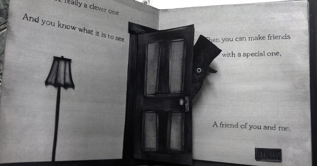 Los sonidos estruendosos, la voz chillante del niño y un ambiente inquietante es lo que va creando la atmósfera para introducir el libro de Sr. Babadook. El libro, a primera vista infantil, muestra imágenes inquietantes, así como la historia que va narrando y los sonidos que oirás antes de verte cara a cara con Babadook.