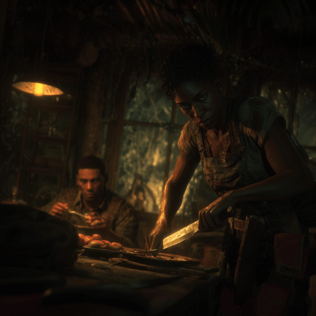 Él afirmó, se levantó y mientras la tomaba de sus finas cinturas, la besó. Sus labios, pequeños y quebrados, tenían un gusto salado y vegetal. En su creciente y delirante pasión, movió sus ahora musculosas manos a los glúteos de Esperanza, quien comenzaba a sudar un líquido verdoso. Los besos con sabor clorofila no esperaron a ver la cama. En el sillón sus cuerpos se encontraron. El secreto, tanto tiempo guardado por Roberto, se hizo éxtasis; después de eso no habría más. Él anhelaba el fin, su fin. Sus bocanadas de placer se hicieron uno con los ecos de la selva, con el criar de los grillos, con el goteo sobre las bromelias, con el susurro de los monos, con el andar de los insectos. La etérea niebla selvática cubrió sus cuerpos desnudos entre besos y caricias. Nadie supo cuántas horas pasaron. Roberto terminó exhausto en el sillón, respirando en calma y con una sonrisa que alimentaba su rostro. Esperanza, envuelta en sábanas que cubrían su azulada, casi endurecida, piel, había tomado el cuchillo.